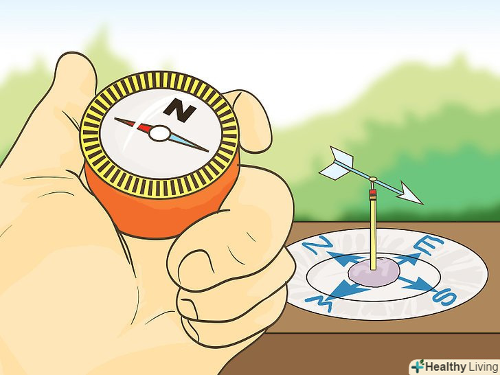 Дізнайтеся про призначення флюгера.цей інструмент дозволяє визначати, звідки дме вітер. Напрямок вітру є важливою характеристикою в метеорології, так як вітер може змінити погоду в тій чи іншій місцевості.[16]- Флюгер обертається і вказує, звідки дме вітер. У цього інструменту два кінці: один має форму стрілки і повертається за вітром, а другий, більш широкий кінець, розгортається в протилежному напрямку. Таким чином, загострений кінець вказує напрямок, звідки дме вітер, наприклад північ, південь, схід або захід. При цьому ви повинні знати, де щодо вас розташовані північ, південь, схід і захід, щоб правильно визначити напрямок вітру.