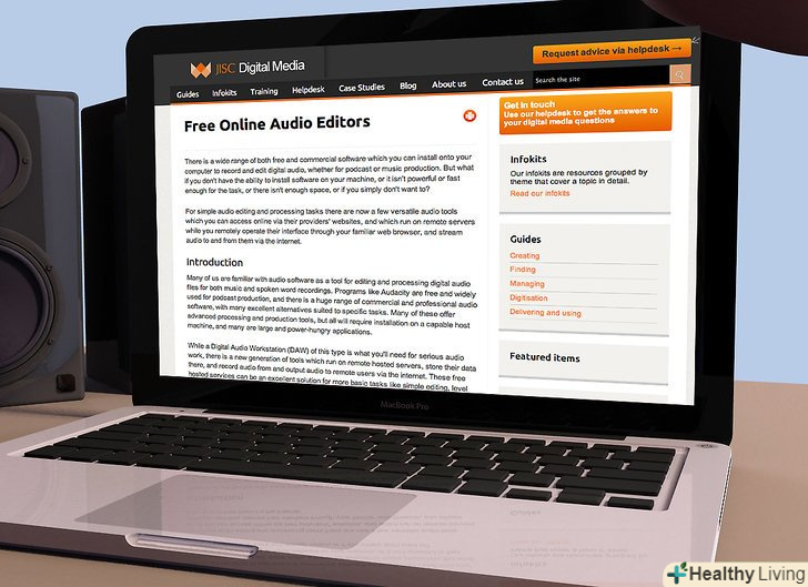 Скористайтеся безкоштовною звуковою програмою.є такі програми, як Audacity: високоякісні та безкоштовні. Це вимагатиме від вас трохи більше роботи, тренування і здібностей перед тим, як Ви зможете самі монтувати своє аудіо.- Програма Audacity, наприклад, вимагає від вас мати музичні заготовки і вміння монтувати їх, але кінцевий продукт може звучати професійніше, і ви зможете контролювати його.