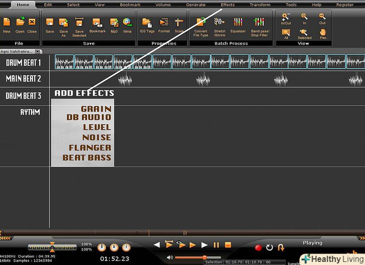 Додайте ефекти.як тільки у вас вийшла повна ритмічна композиція і мелодія, ви можете додати ефекти. Це можуть бути випадкові інструменти, які додадуть Вашому ударному ритму вишуканості.
