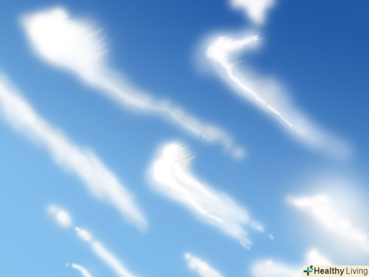 Подивіться на хмари високого ярусу (або просто "високі хмари").вони знаходяться на висоті приблизно 5,943 метра і 12,954 метрів. Вони включають в себе перисті, перисто-шаруваті і купчасті хмари. Зазвичай вони наповнені кристалами льоду і мають розпливчасті обриси. Вони також тонкі і димчасті.- Сліди літака також знаходяться на цьому рівні земної атмосфери.