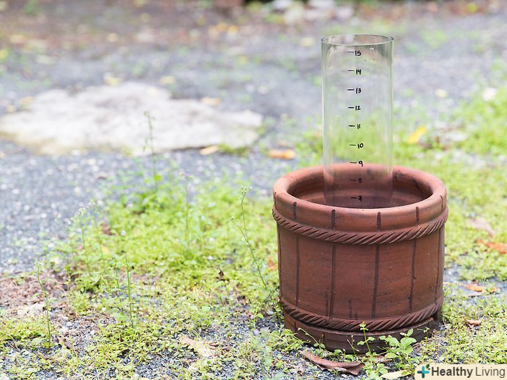 Знайдіть рівну поверхню на відкритому просторі, щоб помістити ваш плювіометр.переконайтеся, що помістили його далеко від дерев, вашого будинку та інших конструкцій, щоб уникнути попадання додаткової води в ваш плювіометр.
