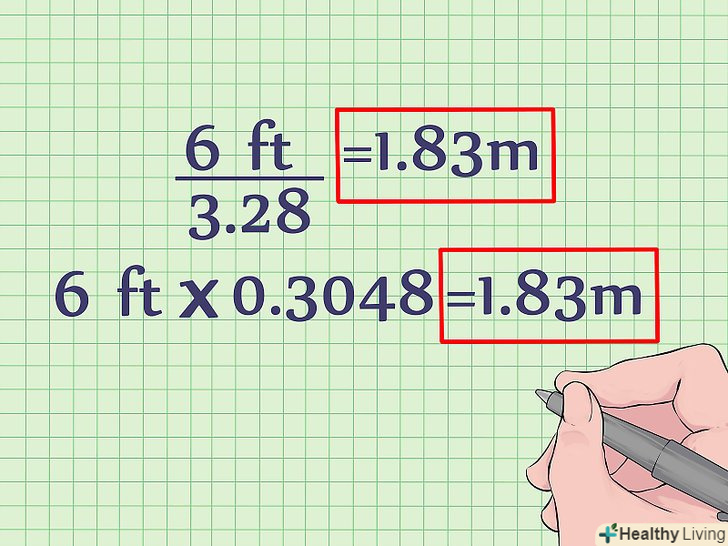 Існує безліч причин, за якими фути буває потрібно перевести в метри, наприклад, якщо в Америці замовляти товар, розміри якого наводяться в футах. В Інтернеті є багато онлайн-конвертерів, але в цій статті ми опишемо, як швидко перетворити фути в метри вручну. Просто запам'ятайте, що 1 м = 3,28 футів, тому значення в футах розділіть на 3,28, щоб отримати значення в метрах. Тут ви знайдете покрокову інструкцію про те, як отримати результат у відповідній одиниці виміру.