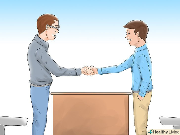 Представтеся.коли входите в кімнату або зустрічаєтеся з тими, хто буде проводити співбесіду, не забудьте представитися. Потисніть руку твердо (але не болісно), щоб показати, що ви зацікавлені в цій зустрічі.
