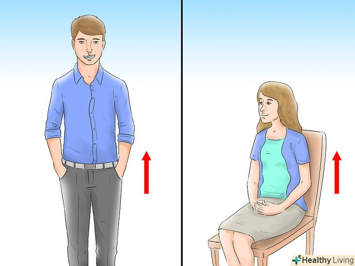 Виглядаєте впевнено. Стійте і сидіть рівно. Постарайтеся не нервувати. Показуйте своїм виглядом, що вам комфортно і приємно там перебувати. Це дасть зрозуміти присутнім, що ви добре вмієте справлятися зі стресом.