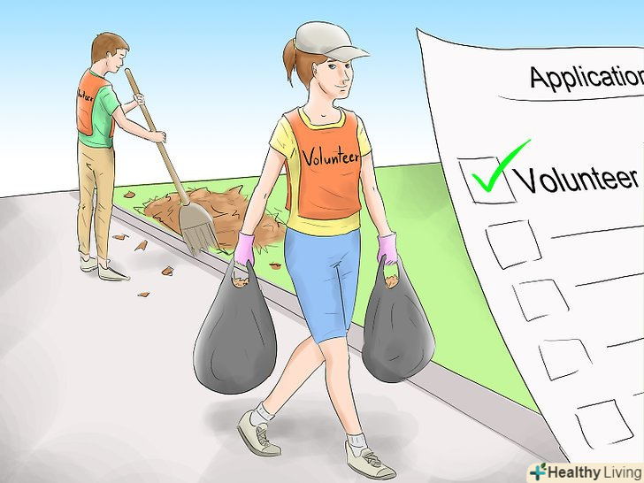 Волонтерство.у заявці або резюме волонтерська робота у вашій спільноті буде виглядати чудово. Є багато місцевих організацій, в яких ви могли б попрацювати, також, можете зайнятися волонтерством онлайн, патрулюючи правки на wikiHow або Wikipedia.