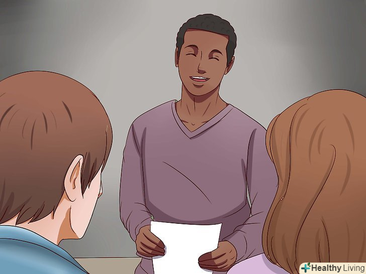 Використовуйте слова, що знімають напругу.налагоджена діяльність зі зняття напруги дозволяє студентам представити себе в кращому світлі. За допомогою цієї діяльності студенти можуть оцінити схожі моменти і відмінності між ними в більшій мірі.- Якщо у вас в класі діти, використовуйте прості слова, що дозволяють дітям порівнювати і знаходити відмінності між іншими дітьми в групі. Попросіть кожного написати те, що їм подобається (наприклад, улюблений колір, тварина, блюдо і так далі). Кожна дитина повинна вказати своє ім'я і поставити підпис на листку. Прочитайте відповіді всій групі, не відкриваючи імені, і попросіть їх вгадати, хто з дітей дав ту чи іншу відповідь.[4]