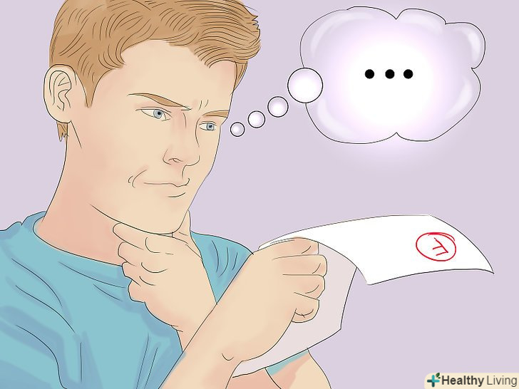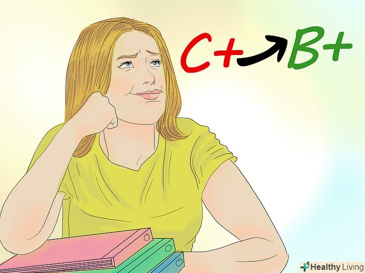 Будьте позитивні.якщо ваші оцінки не такі високі, як могли б бути, ви легко можете відчути негатив. Погані оцінки розчаровують, але вже сам факт, що ви шукаєте шляхи їх підвищення, говорить про те, що ви намагаєтеся мислити позитивно.[12]- Зізнайтеся перед самим собою, що ваші оцінки не дуже хороші, але ви намагаєтеся зробити щось, щоб їх поліпшити. Думайте про те, як ви будете їх покращувати, а не переживайте про те, як справи йдуть зараз.