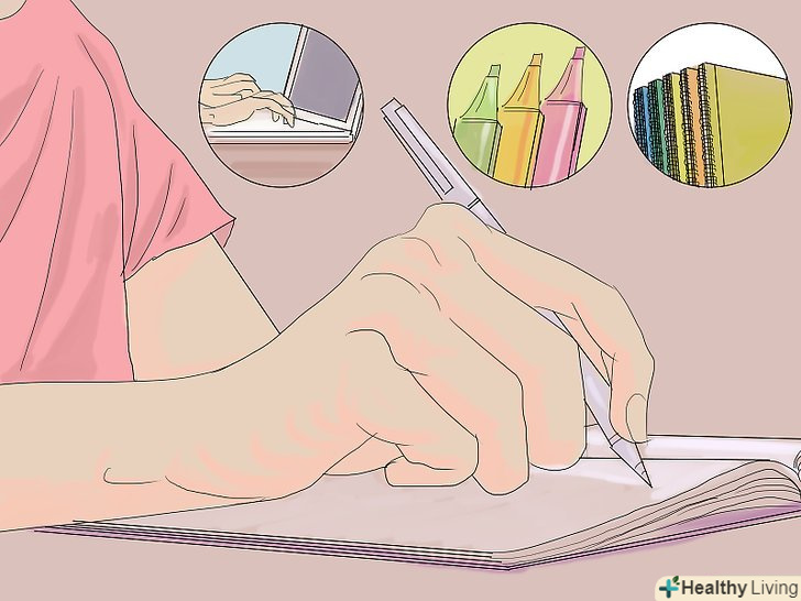 Попрацюйте над удосконаленням своїх навичок конспектування.залежно від характеру курсу, який ви вивчаєте, вміння вести хороші конспекти може стати ключем до Вашого успіху. Подивіться на свої нинішні конспекти. Що ви можете в них поліпшити?[16]- Слідкуйте, щоб ваші конспекти було легко читати. Якщо ви не можете прочитати свої власні записи, то вони стають марними.
