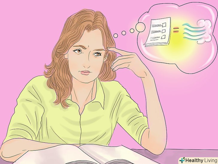 Постарайтеся знизити свій рівень стресу.навчання не повинно викликати стрес. Якщо ви перебуваєте в стресі, вам важче вчитися і запам'ятовувати матеріал. Подумайте, чому ви опинилися в стресі і постарайтеся усунути його причини (приберіть їх зі свого життя).[11]- Наприклад, якщо ви перебуваєте в стресі через своїх завдань, тому що робите їх в останню хвилину, складіть собі розклад роботи над завданнями. Заплануйте достатньо часу у своєму розкладі, щоб виконати завдання заздалегідь, а не в останню хвилину, це знизить стрес, який ви відчуваєте.