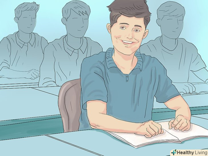 Сидите за передніми партами.якщо ви сидите попереду, це зовсім не означає, що ви лебезіте перед учителем, але це підвищує ваші шанси бути уважними і запам'ятати те, чого вас вчать. Якщо ви сидите попереду, ви будете менше відволікатися на інших студентів.[2]