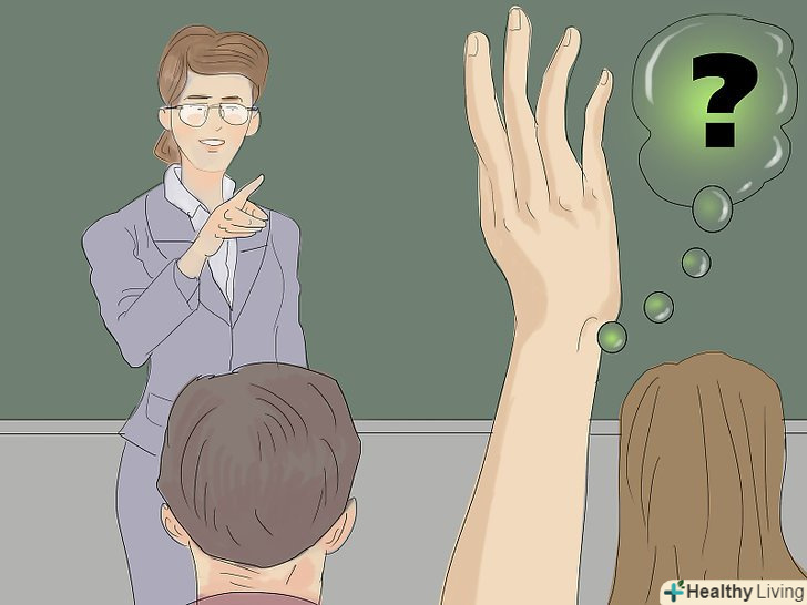 Піднімайте руку.якщо на уроці у вас виникає питання, задайте його. Якщо вам здається, що Ви знаєте відповідь на питання вчителя, дайте відповідь на нього. Якщо у вашій школі прийнято ставити оцінки за активну роботу на уроці, то ваші питання і відповіді допоможуть вам отримати ці оцінки.[3]- Якщо ви будете активні в класі, це також приверне до вас увагу вчителя, і він буде вважати вас зацікавленим у навчанні студентом.