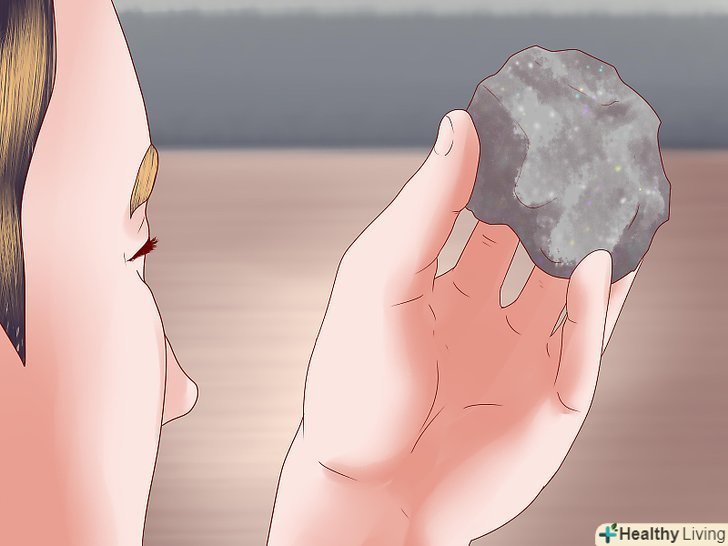 Придивіться до того, як ваш мінерал блищить.блиском називають те, як мінерал відбиває світло, і, хоча це не науковий тест, він може стати в нагоді для опису. Більшість мінералів мають "скляний" ("глянцевий") або металевий блиск. Однак ви можете описати блиск і як "жирний", “перламутровий" (білуватий блиск), "матовий" (тьмяний, як у неглазурованої кераміки), або вдатися до будь-якого іншого визначення, яке здасться вам точним. [2] Use multiple adjectives if you need to.