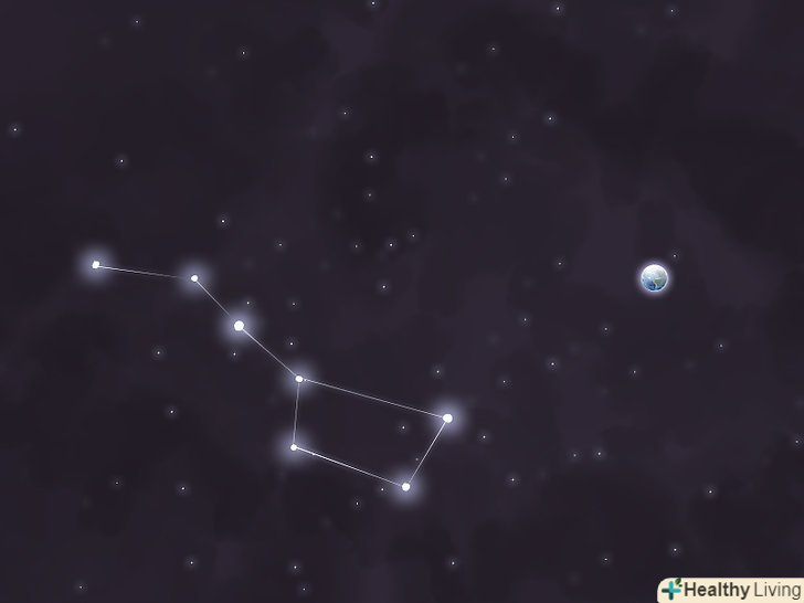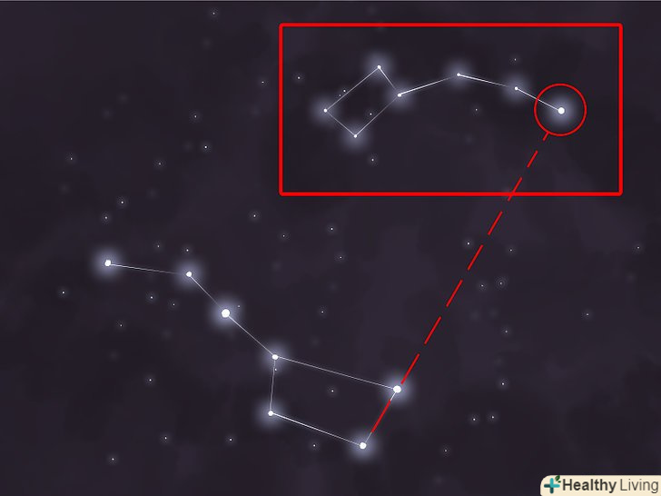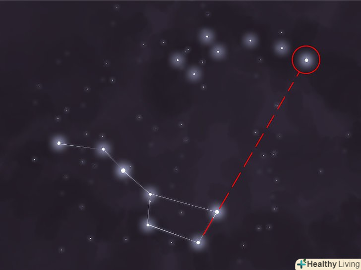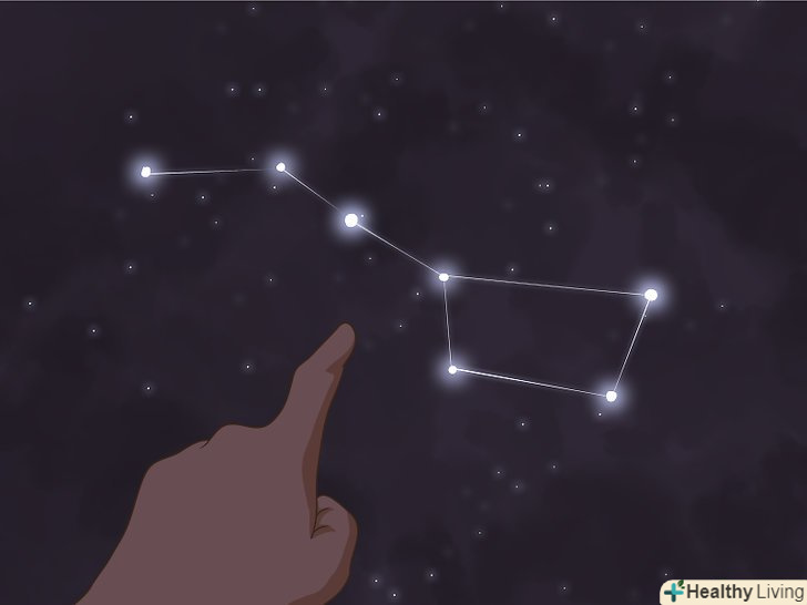 ЗнайдітьПолярну зірку.якщо ви в змозі знайти на небі Полярну зірку, то по ній можна знайти ківш Великої Ведмедиці (і навпаки). Полярна зірка зазвичай дуже яскрава. Щоб її виявити, подивіться в північному напрямку, піднявши погляд приблизно на одну третину відстані від горизонту до точки Зеніту. Пам'ятайте, що Полярну зірку слід шукати в північному напрямку.- Ківш Великої Ведмедиці обертається навколо Полярної зірки зі зміною пори року і доби. Зірки ковша Великої Ведмедиці зазвичай такі ж яскраві, як і Полярна зірка. Сама Полярна зірка нерідко використовується для навігації, так як точно вказує напрямок «географічного півночі».[5]