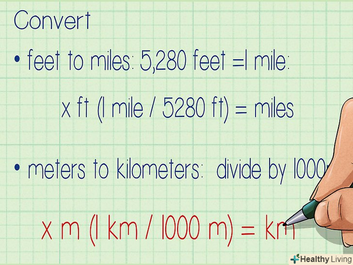 Визначте відстань, яку потрібно перетворити.краще, якщо воно буде представлено в кілометрах. Немає сенсу перетворювати відстань, виміряну в менших одиницях (наприклад, в метрах або сантиметрах), але ви можете спробувати, якщо вам це цікаво.- Щоб перетворити метри в кілометри, розділіть значення в метрах на 1000.[9]