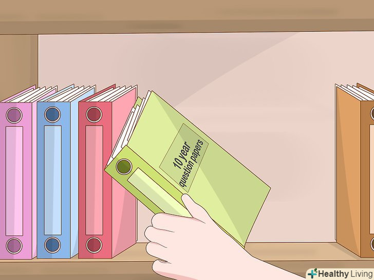 Перед іспитом вивчіть варіанти минулих років.якщо у вас є можливість подивитися старі екзаменаційні завдання, обов'язково постарайтеся їх виконати і подивіться, чого ви ще не знаєте. Якщо у вас немає такої можливості, знайдіть схожі тести з типовими питаннями і постарайтеся на них відповісти.[9]- Відповідайте на питання тестів минулих років — так ви зрозумієте, які теми вам потрібно підучити, а які теми ви добре освоїли.