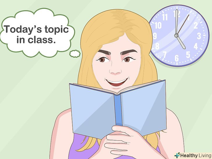 Прочитайте тему ще раз перед уроком.біологія - це не той предмет, який можна зрозуміти за кілька хвилин перед заняттям. Прочитайте новий матеріал, перед тим як будете обговорювати його на уроці, щоб краще зрозуміти його зміст і представляти, про що йде мова. Ви зрозумієте і запам'ятайте набагато більше, якщо прийдете на урок з готовими питаннями з приводу нової теми.[5]- Дізнайтеся, які теми йдуть за навчальною програмою, щоб прочитувати їх перед заняттям.