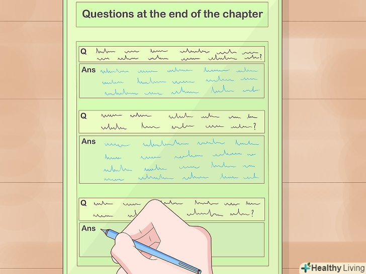 Відповідайте на питання в кінці кожного розділу.у підручниках з біології є дійсно корисні питання, які дозволяють закріпити поняття з щойно прочитаної теми. Спробуйте відповісти на питання і перевірте правильність своїх відповідей. Зверніть увагу на ті питання, на які вам складно знайти відповідь. Перечитайте свій конспект або главу, в якій обговорюються ці питання.[7]- Якщо ви все ж не змогли відповісти на деякі питання, обов'язково попросіть допомоги у викладача.