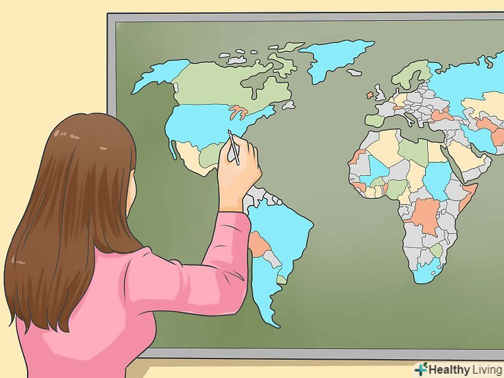 Грайте в географічні ігри.Грайте в настільні ігри або онлайн-ігри на географічну тематику, це допоможе вам закріпити вивчену інформацію. Такі ігри перетворюють нудне зазубрювання в цікаве заняття.[18]- Ви можете перевірити свої знання з географії в грі Free Rice (безкоштовний рис). Виберіть тему " World Capitals "(столиці світу), яка знаходиться в розділі "Geography"(Географія) на сторінці "Subjects" (теми).[19]