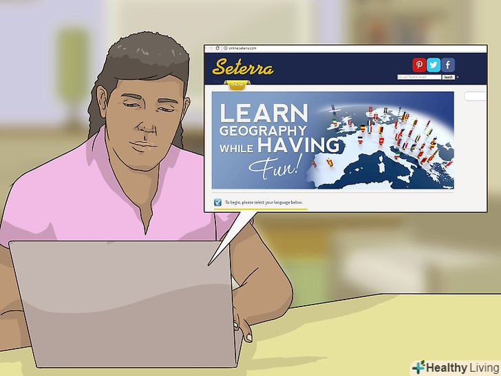 Відвідайте освітні веб-сайти.існують різні географічні сайти, які дозволять вам цікавим шляхом підвищити знання з географії країн світу. На сайтах можна знайти ігри, вікторини та інші корисні матеріали, які полегшують процес запам'ятовування країн і роблять навчання більш інтерактивним. Щоб приступити до захоплюючого вивчення географії, можна відвідати нижчезазначені сайти.- Seterra Online-веб-сайт з безкоштовними вікторинами, що включають в себе питання по контурних картах країн, які допомагають кращому запам'ятовуванню матеріалу.[9]