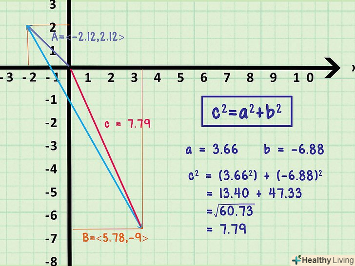 - Щоб знайти значення результуючого вектора, компоненти lt;3,66, -6,88gt; якого Ви знайшли в попередньому кроці, використовуйте теорему Піфагора.