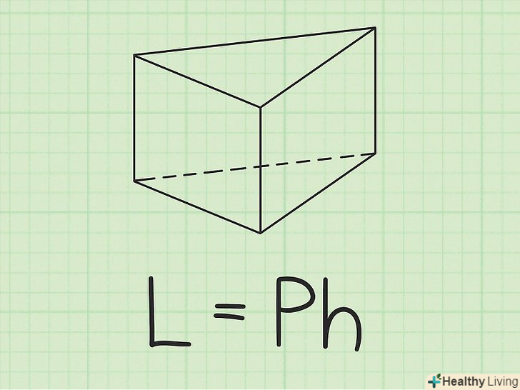 Перемножте периметр однієї основи і висоту призми.вийде площа бічної поверхні призми (в квадратних одиницях). Це перше значення, необхідне для обчислення площі поверхні призми (другим значенням є площа основи).- Наприклад,