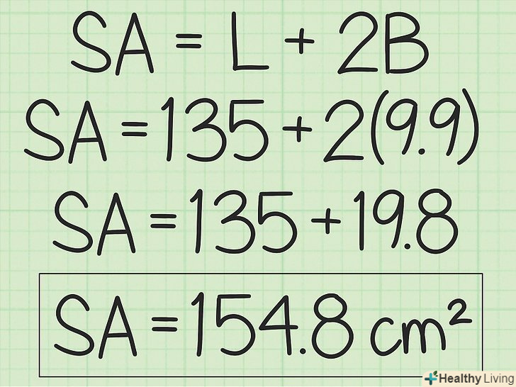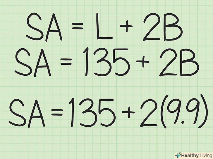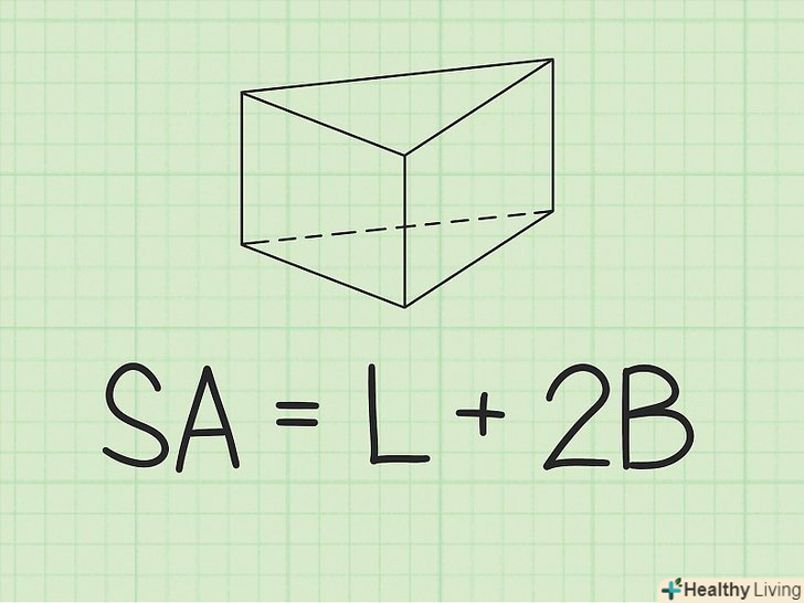 Проведіть обчислення.помножте площу підстави на 2, а потім до результату додайте площу бічної поверхні. Вийде площа поверхні трикутної призми (в квадратних одиницях).- Наприклад: