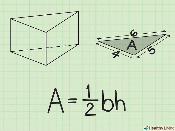 Запишіть формулу для обчислення площі трикутника.оскільки кожна основа трикутної призми є трикутником, для обчислення площі основи скористайтеся наступною формулою:, де
