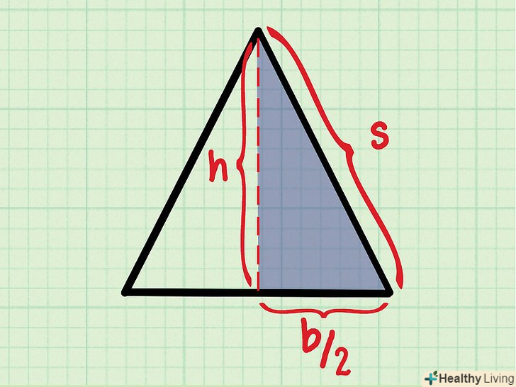 - Якщо всі сторони трикутника рівні (рівносторонній трикутник), в якості підстави Виберіть будь-яку сторону. Рівносторонній трикутник є окремим випадком рівнобедреного трикутника, але його площа обчислюється так само.[2]