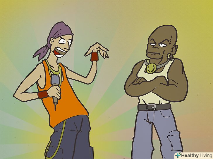 Приступайте до Фрістайл-баттлам.кращий спосіб почати-знайти супротивників по боротьбі виключно для розважальних цілей. Практикуйтеся з друзями, які легко сприймають на свій рахунок образи. Влаштовуйте баттли якомога частіше, особливо якщо у вас є друг, який дійсно знає толк у фрістайлінгу і може допомогти вам поліпшити свої навички. Як тільки ви прийшли до висновку, що самі домоглися значних успіхів, спробуйте свої вміння на домашніх і реп-вечірках. Вони представляють відмінні арени для вдосконалення наявних у розпорядженні фішок перед безпосередньою участю в баттлі.