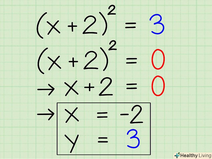 Використовуйте його для знаходження координат x і y. ви можете знайти x, просто прирівнявши (x + 2)2 до 0. Тепер, коли (x + 2)2 = 0, обчислюємо x: x =-2. Координата y-це постійна в правій частині повного квадрата. Отже, y = 3. Вершина параболи рівняння x2 + 4x + 1 = (-2, 3)