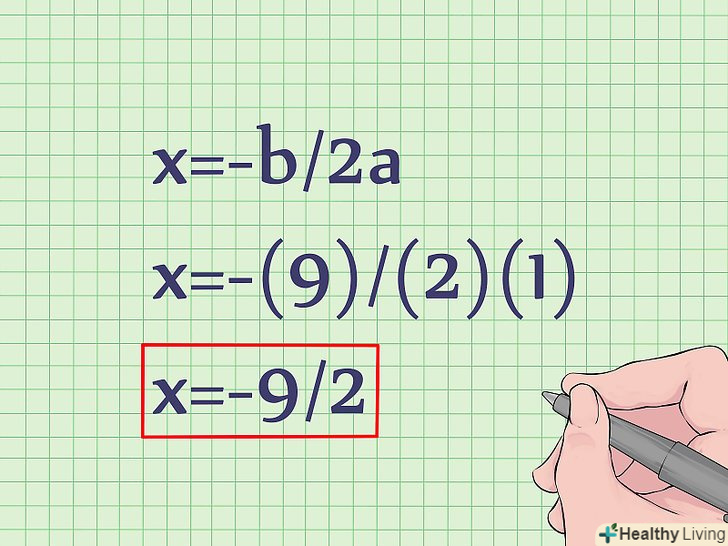 Скористайтеся формулою для обчислення значення координати x вершини. Вершина також є точкою симетрії параболи. Формула для знаходження координати x параболи: x = -b/2a.підставте в неї відповідні значення для обчислення x.- X=-b/2a