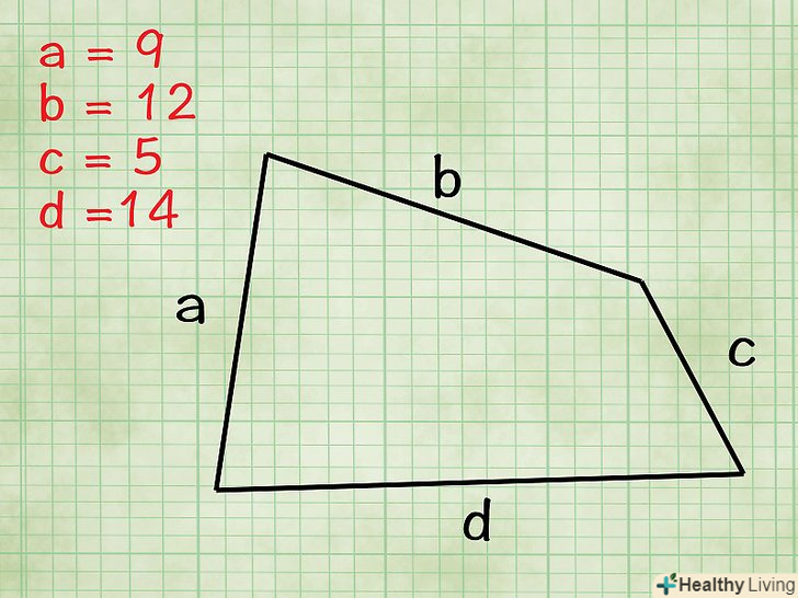 - Приклад: дано чотирикутник довільної форми зі сторонами 12 см, 9 см, 5 см і 14 см.