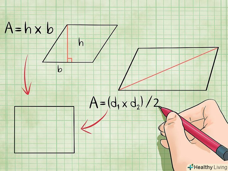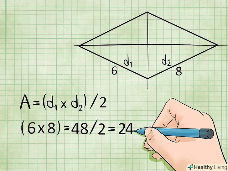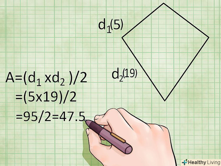 - Якщо ви не знаєте довжини діагоналей і не можете їх виміряти, використовуйте тригонометрію, щоб обчислити їх. Прочитайтецю статтю, щоб дізнатися більше інформації.