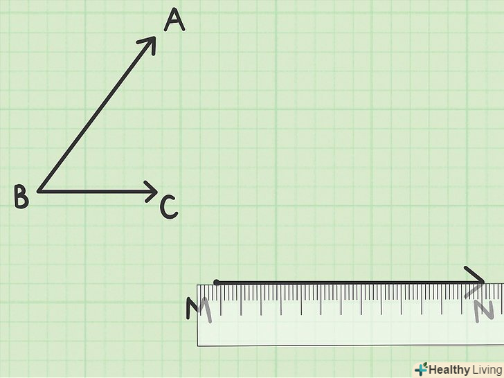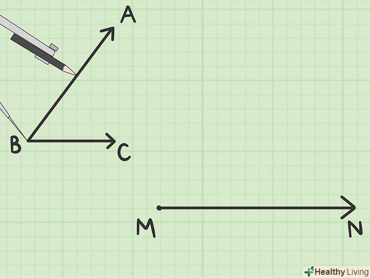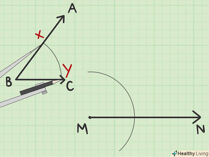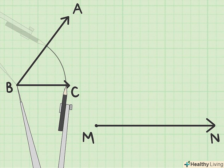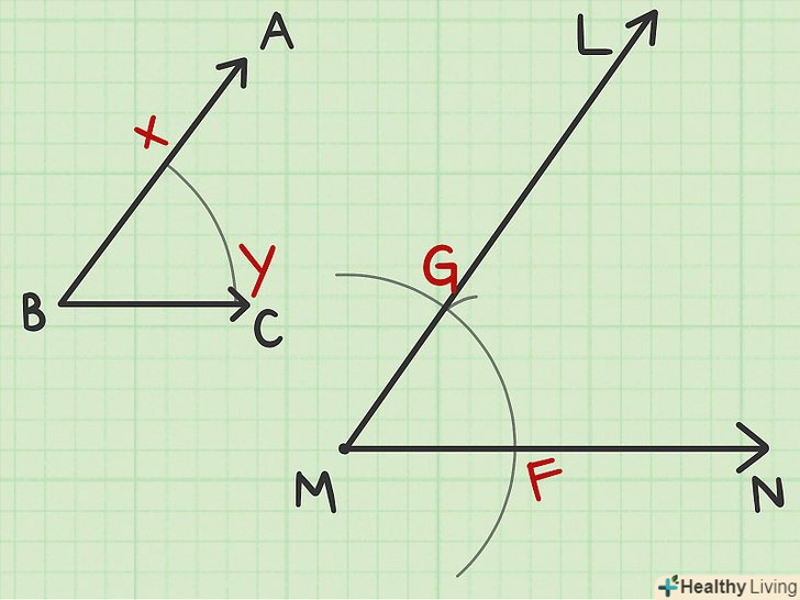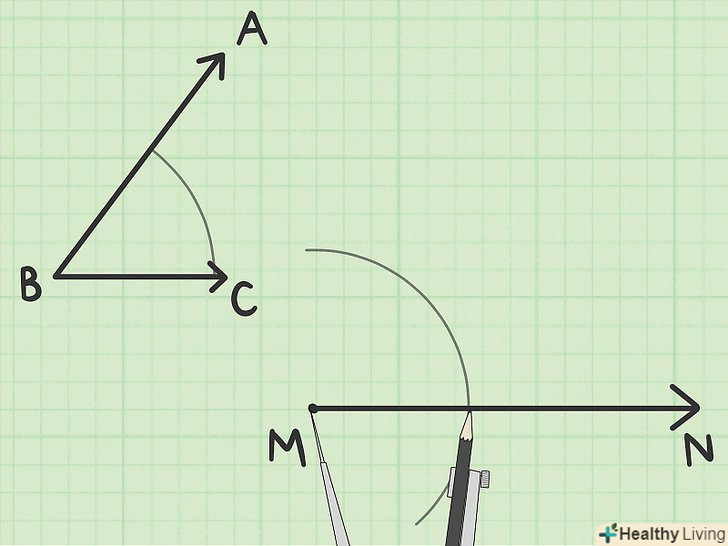 Подивіться на побудований кут LMN. він дорівнює вихідному куту ABC.[9] Подивіться на побудований кут LMN. він дорівнює вихідному куту ABC.[9]- Якщо побудований кут не дорівнює вихідному, під час роботи стежте за розчином циркуля, який на деяких етапах міняти не можна.