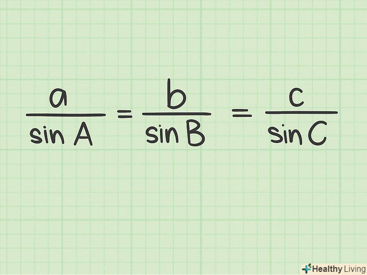 Запам'ятайте теорему синусів.Теорема синусів є корисним інструментом для обчислення кутів і сторін будь-якого трикутника. Зокрема, вона допоможе вам знайти гіпотенузу прямокутного трикутника, якщо вам дано катет і кут, відмінний від прямого. Згідно з теоремою синусів, в будь-якому трикутнику зі сторонами A, B, C і кутами A, B, C вірно рівність A /sin a = B /sin b = C /sin з.[9] Запам'ятайте теорему синусів.Теорема синусів є корисним інструментом для обчислення кутів і сторін будь-якого трикутника. Зокрема, вона допоможе вам знайти гіпотенузу прямокутного трикутника, якщо вам дано катет і кут, відмінний від прямого. Згідно з теоремою синусів, в будь-якому трикутнику зі сторонами A, B, C і кутами A, B, C вірно рівність A /sin a = B /sin b = C /sin з.[9]- Теорема синусів застосовується до будь-яких трикутників, а не тільки до прямокутних (але тільки в прямокутному трикутнику є гіпотенуза).