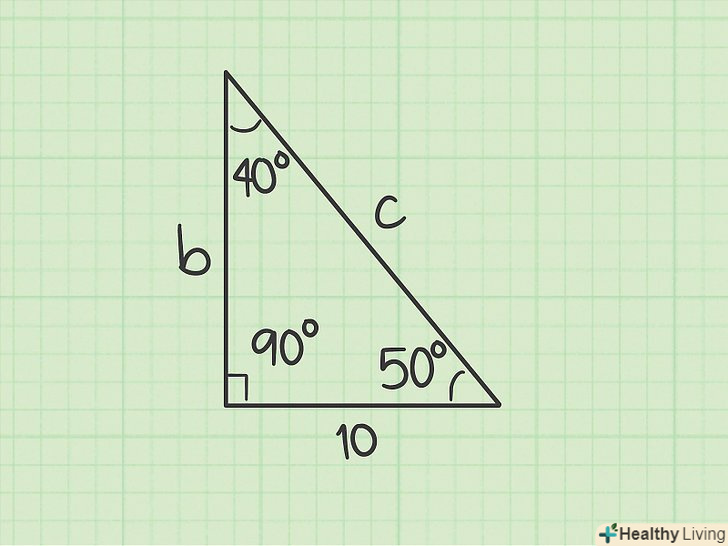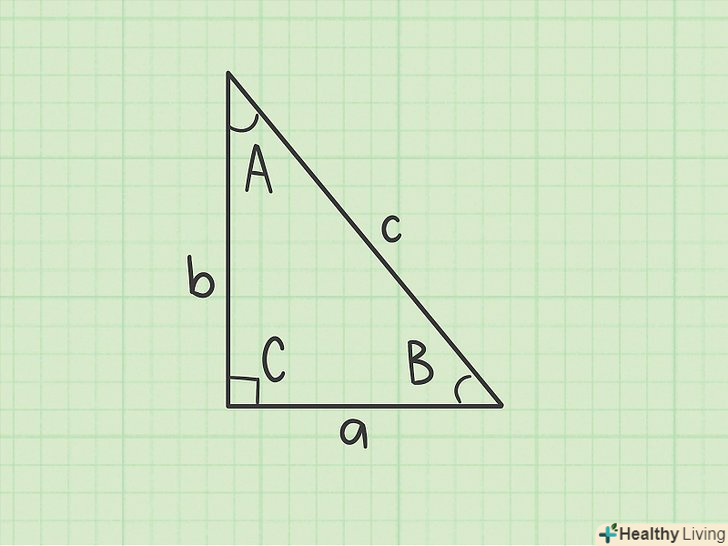 Позначте сторони трикутника через «а» (відомий катет), «b» (невідомий катет), «с» (гіпотенуза).потім позначте кути трикутника через "а «(навпроти катета» а«),» В «(навпроти катета» b«),» С" (навпроти гіпотенузи). Позначте сторони трикутника через «а» (відомий катет), «b» (невідомий катет), «с» (гіпотенуза).потім позначте кути трикутника через "а «(навпроти катета» а«),» В «(навпроти катета» b«),» С" (навпроти гіпотенузи).