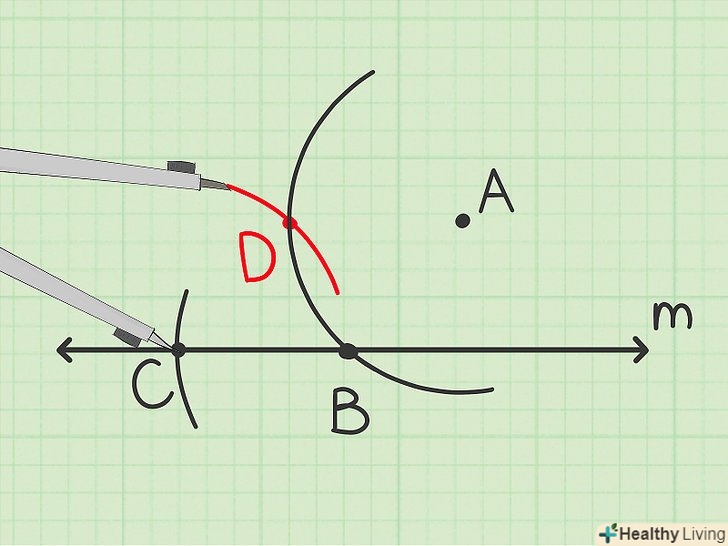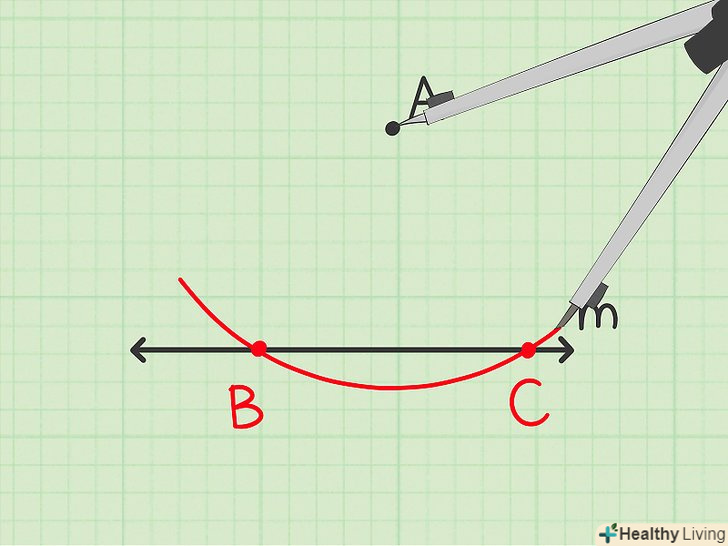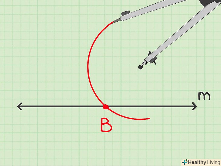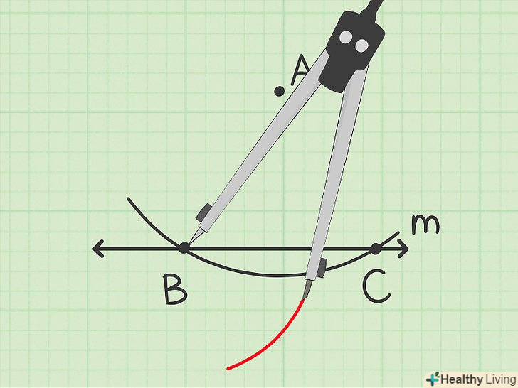 Проведіть першу малу дугу навпроти даної точки.спочатку збільште розчин циркуля. Встановіть голку циркуля в точці, а потім проведіть дугу навпроти точки