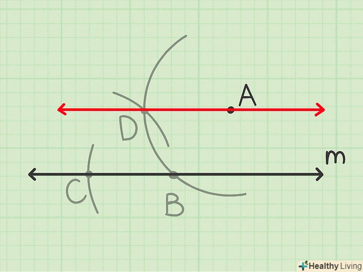 Проведіть пряму через дану точку і точку перетину двох дуг.ця пряма паралельна даній прямій і проходить через дану точку.- Наприклад, проведіть пряму через точку