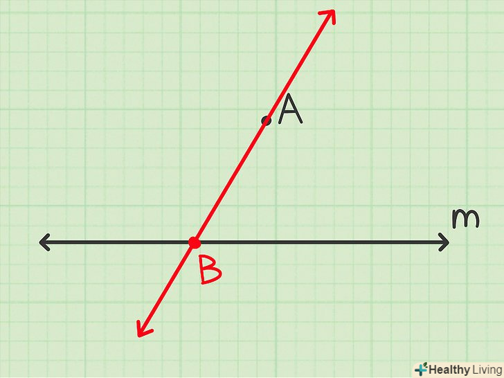 Проведіть пряму через дану точку і будь-яку точку, яка лежить на даній прямій.за допомогою такої січної прямої можна побудувати відповідні кути, а потім провести паралельну пряму.[5]- Проведіть довгу січну пряму-так, щоб вона йшла за дану точку.