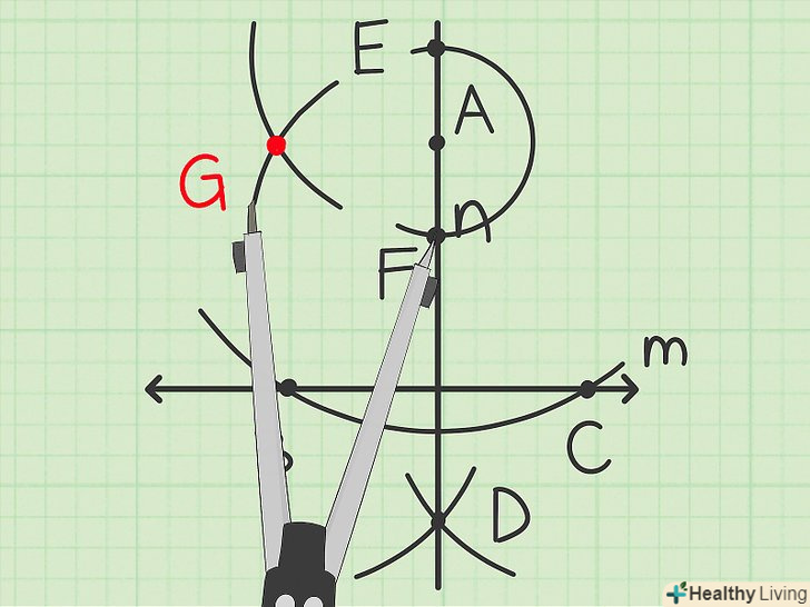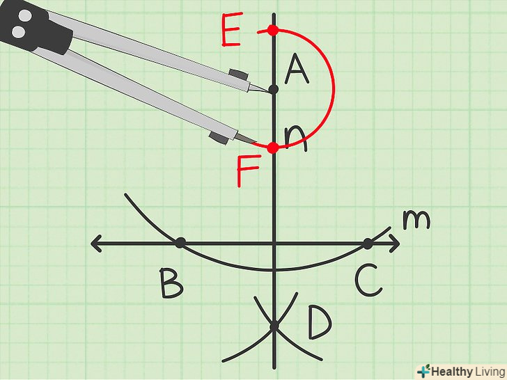 Проведіть дугу, яка перетне перпендикулярну пряму в двох точках. для цього встановіть голку циркуля в точціі проведіть дугу, яка перетне пряму