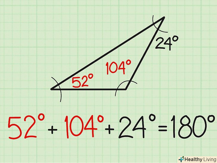 Перевірте відповідь.для цього складіть числові значення всіх трьох кутів (сума повинна бути дорівнює 180°): 52° + 104° + 24° = 180°.