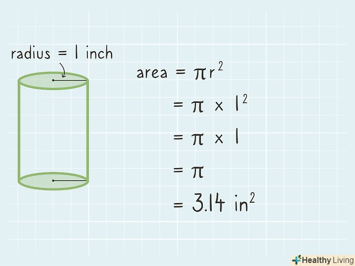 Знайдіть площу основи за формулою:A = πr2 . Просто підставте в неї радіус. Ось як це робиться:- A = π x 12 =