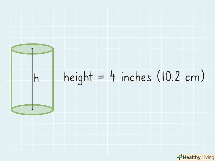 Знайдіть висоту циліндра.якщо вона дана, перейдіть до наступного кроку. В іншому випадку виміряйте її лінійкою. Висота-це відстань між двома підставами. Наприклад, висота дорівнює 4 см.