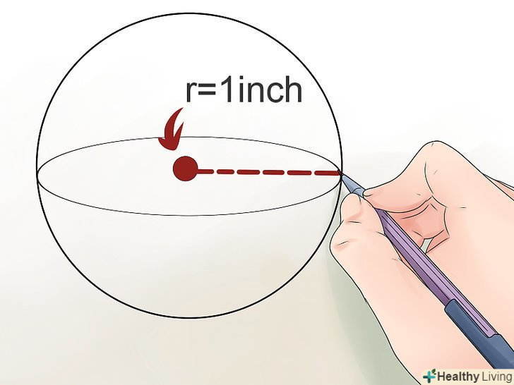 Знайдіть радіус.якщо радіус дано, перейдіть до наступного кроку. Якщо дано діаметр, розділіть його на два, щоб знайти радіус.[3] коли ви обчислите радіус, запишіть його. Наприклад, радіус дорівнює 3 см.[4]- Якщо дана тільки площа поверхні сфери, обчисліть радіус так: площа поверхні розділіть на 4π, а потім з отриманого значення витягніть квадратний корінь. Таким чином: r = √(S/4π), де S — площа поверхні сфери.[5]