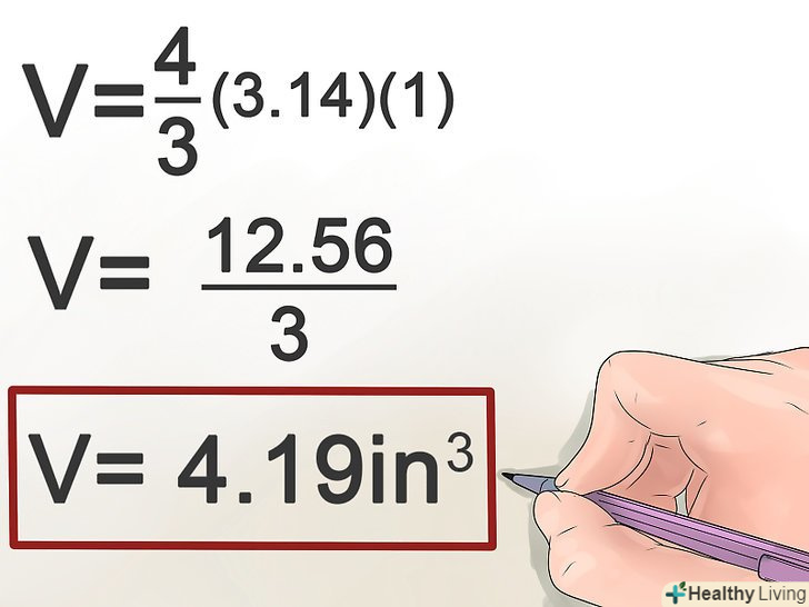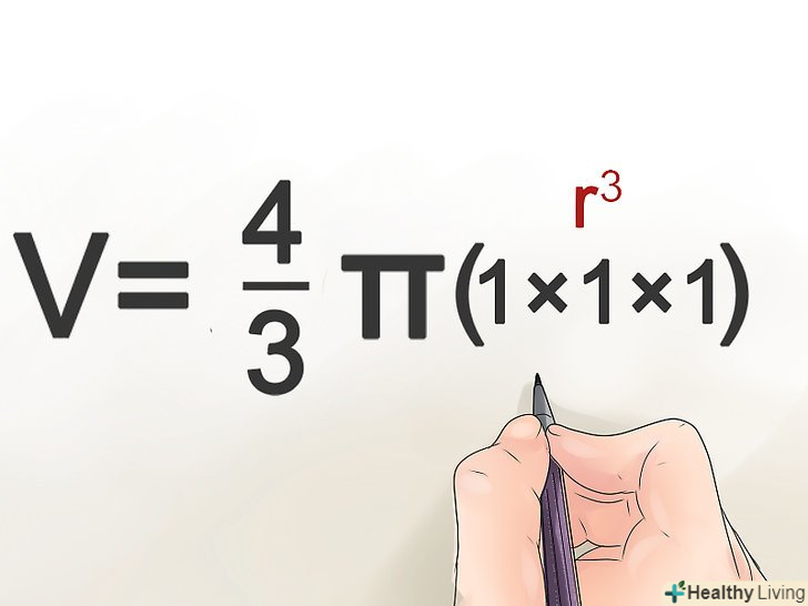 Кубічний радіус помножте на 4/3. ви підставили в формулу значення r3 (в нашому прикладі 27); тепер помножте це значення на 4/3: 4/3 * 27 = 36. Тепер формула запишеться так:V = π/π * π * 27 = 36π.