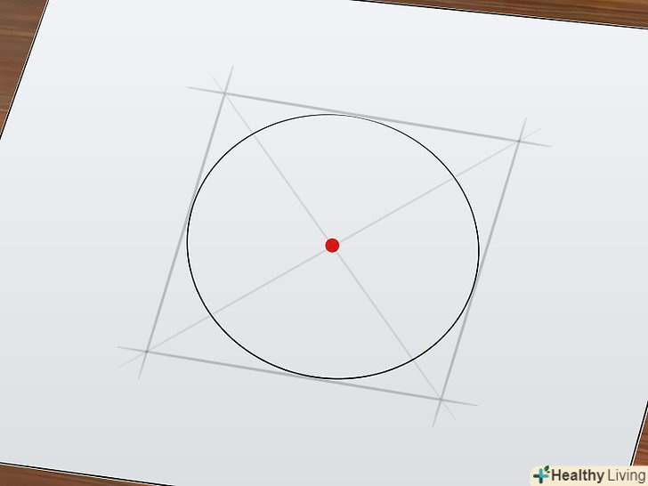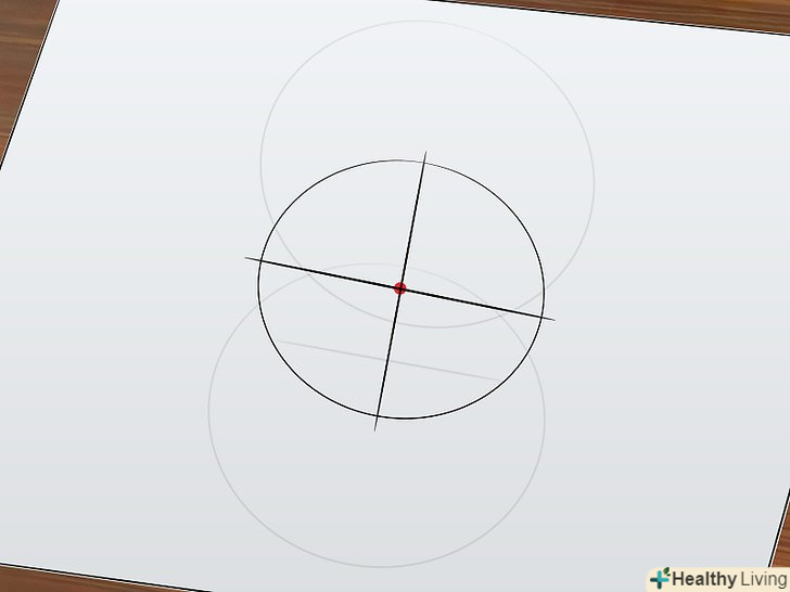 Знайдіть центр кола. Точка перетину двох діаметрів є центром вихідної окружності. Позначте цю точку. Якщо потрібно, зітріть накреслені вами кола і діаметри.
