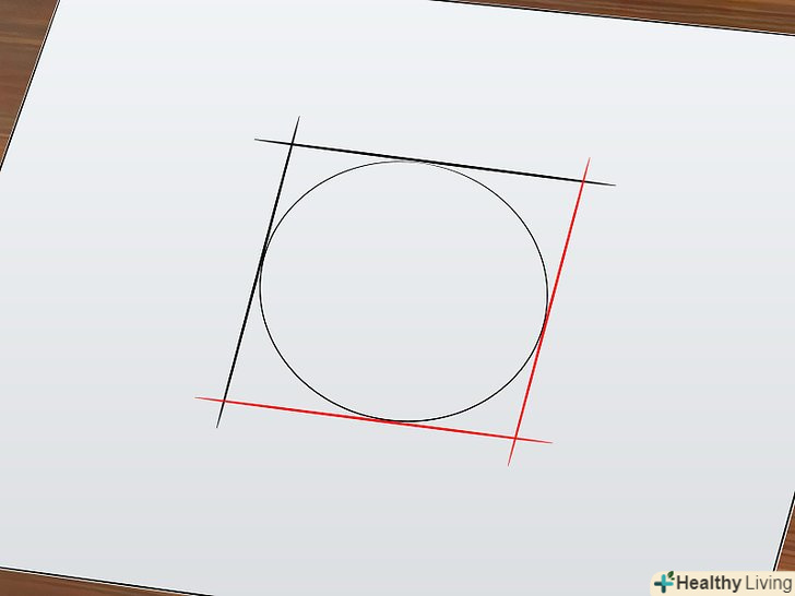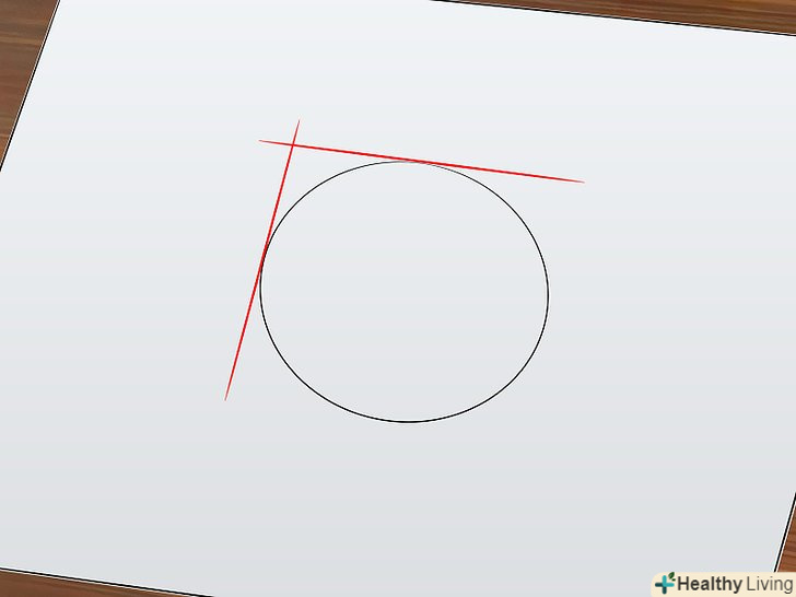 До даної окружності проведіть дві дотичні.дотичні можна провести до двох довільних точок кола. Але ви полегшите собі роботу, якщо проведете дотичні під прямим або гострим кутом один до одного.[5]