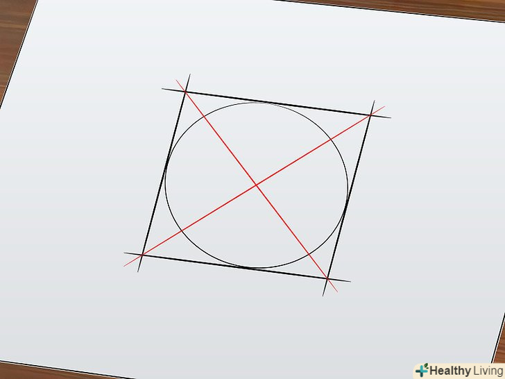 Перевірте правильність знаходження центру кола за допомогою циркуля. Центр кола розташований строго в точці перетину діагоналей, тільки якщо ви не допустили помилку при проведенні паралельних дотичних або діагоналей. Зітріть паралелограм і його діагоналі.