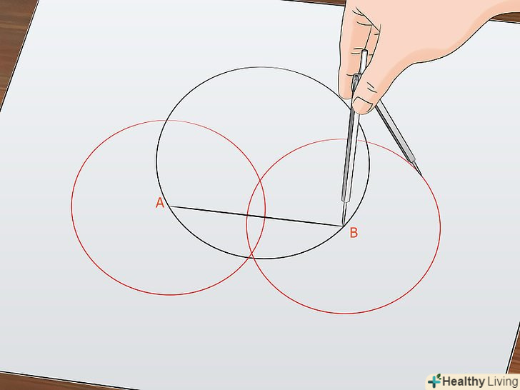 За допомогою циркуля накресліть дві пересічні кола.окружності повинні бути одного радіуса. Центром першого кола зробіть точку А, а другого кола – точку в.креслите кола так, щоб вони перетиналися на зразок діаграми Венна.- Кресліть кола олівцем, а не ручкою, щоб мати можливість стерти їх.