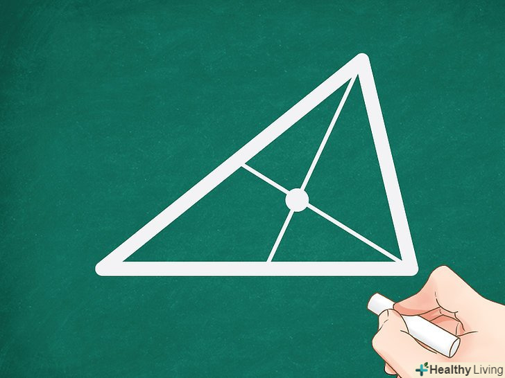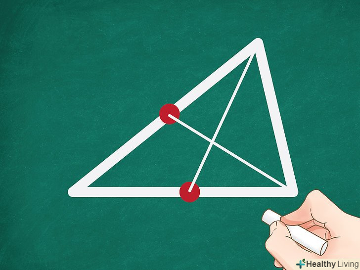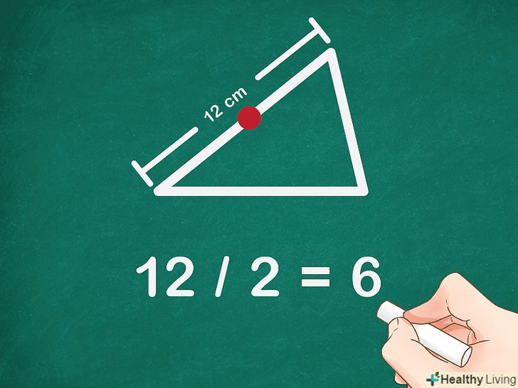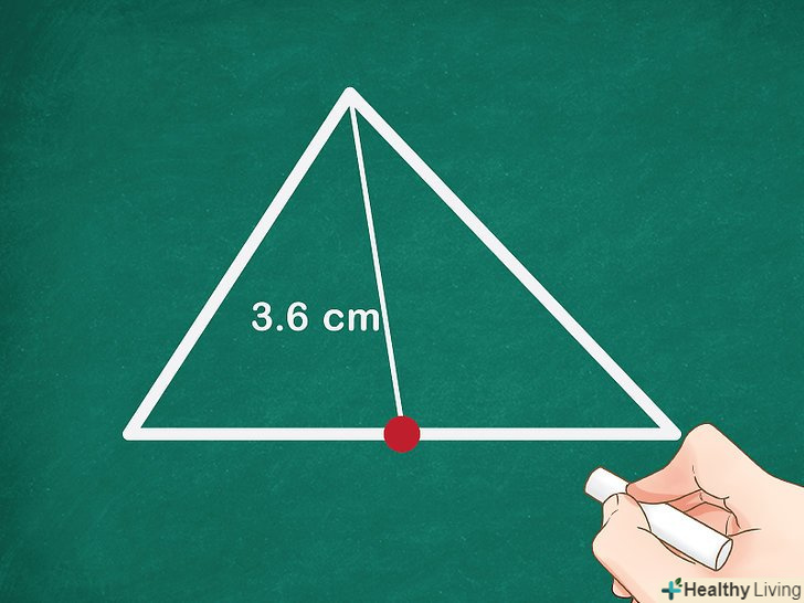 Знайдіть середину однієї сторони трикутника.для цього виміряйте сторону і розділіть її довжину навпіл. Середину відзначте точкою A.- Наприклад, якщо сторона трикутника дорівнює 10 см, то середина знаходиться на відстані 5 см (